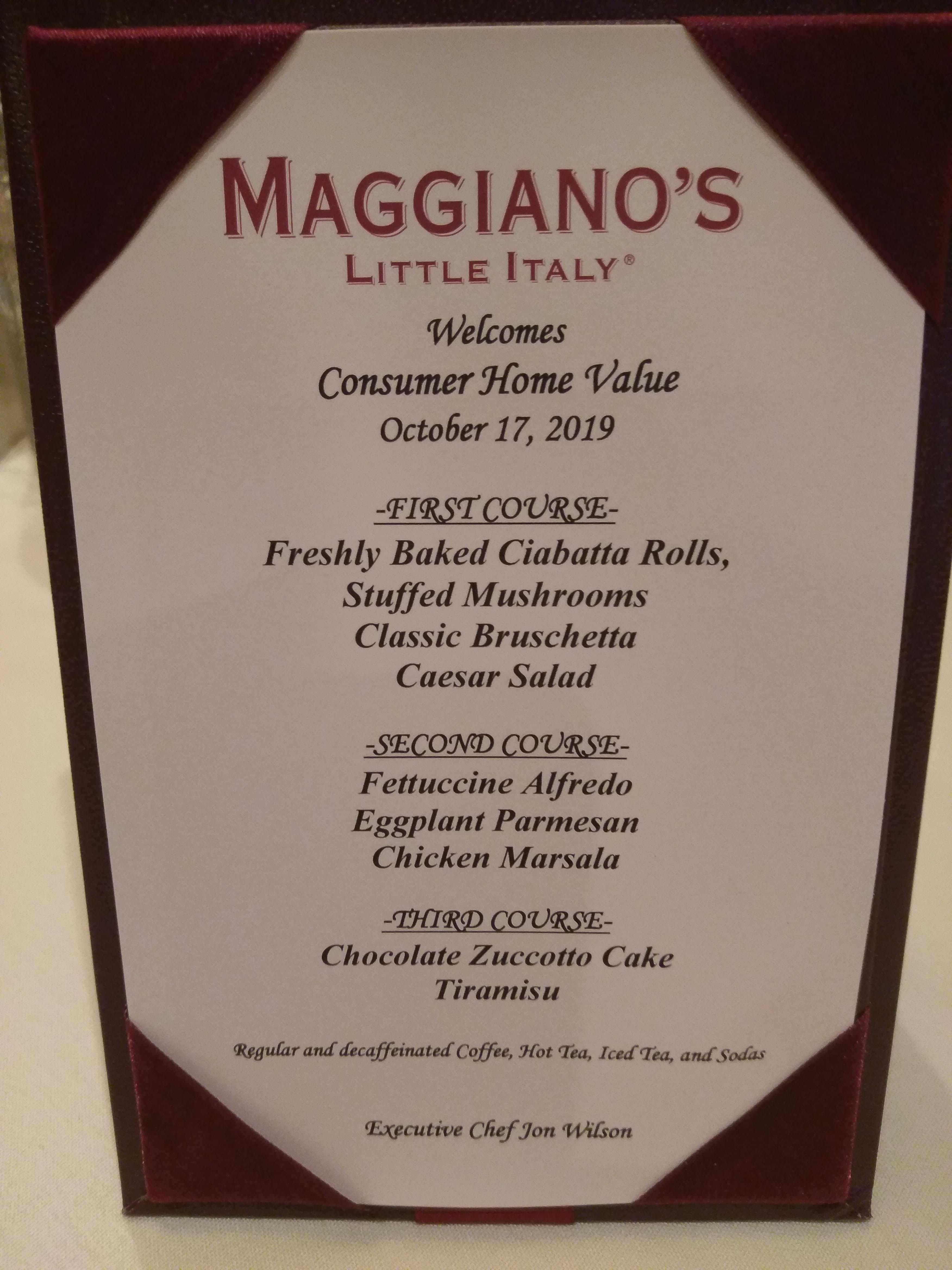 Thank you Maggiano’s for a customized menu