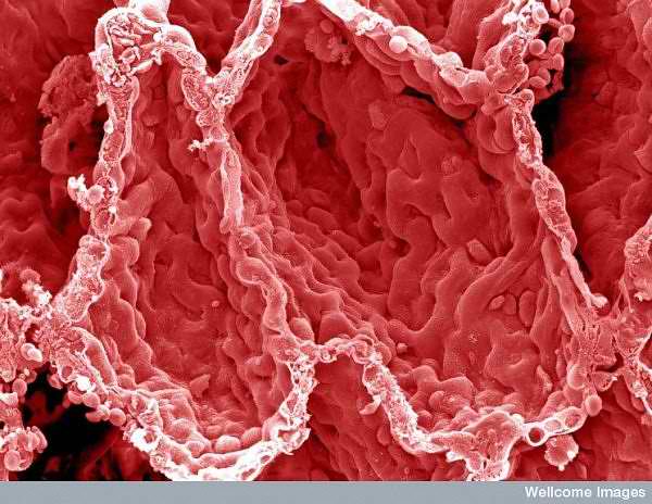 Inside view of a cancerous lung tumor